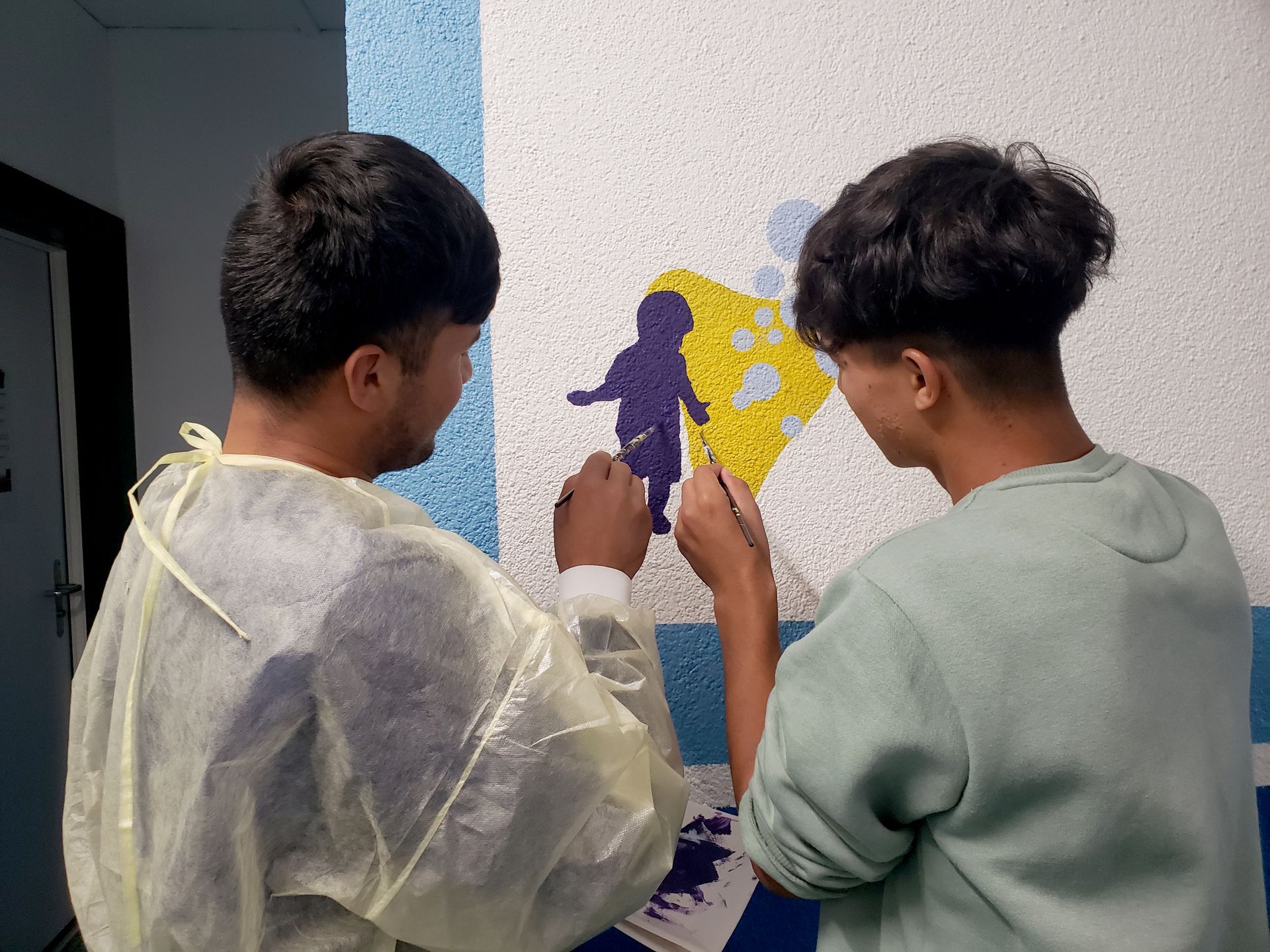 The murals create a very calming and relaxing atmosphere in the center for asylum seekers. This has a very positive effect on the relationships between the residents.